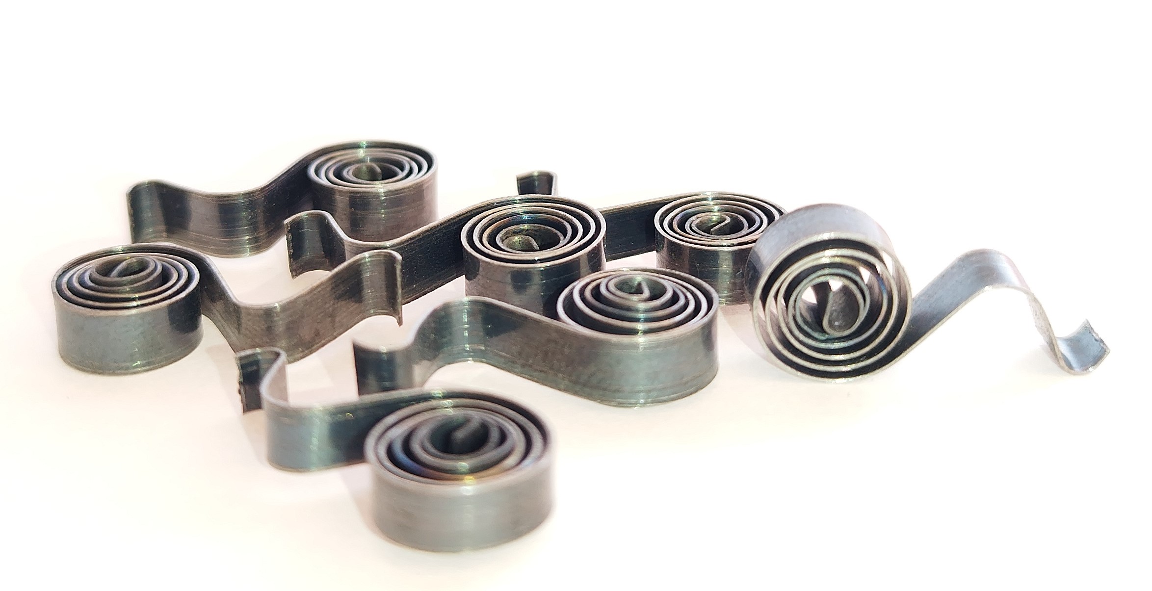 son utilizados en la relojería analógica, en juguetes y en instrumentos de medición enrollable, se usan para provocar un movimiento cuando se les deforma.
